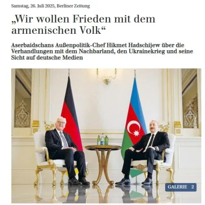«Если наши партнёры и друзья из Москвы и Киева захотят встретиться в Баку — мы это приветствуем», — сказал он немецкому изданию Berliner Zeitung.