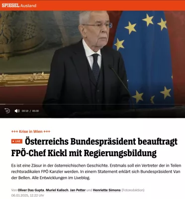 После провала коалиционных переговоров президент Ван дер Беллен поручил главе «Партии Свободы» Герберту Киклю сформировать правительство, передает Der Spiegel.