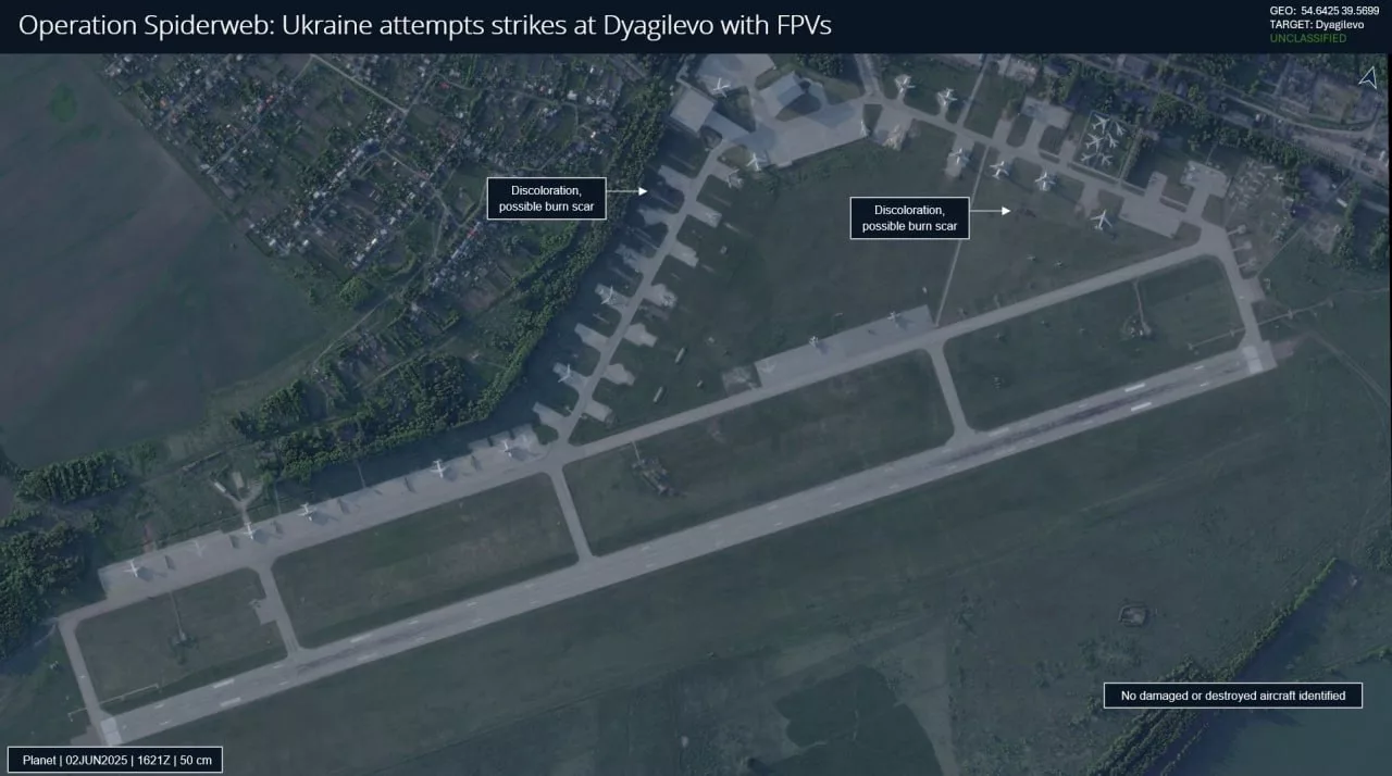 Аналитики отмечают лишь возможные следы огня на земле — скорее всего, это последствия работы российской ПВО по дронам.