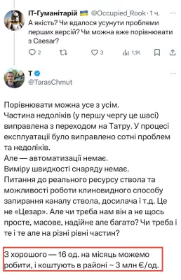 Мощности военно-промышленного комплекса Украины якобы позволяют производить по 16 САУ «Богдана» ежемесячно. Стоимость единицы достигает 3 млн евро.