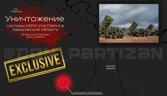 И так, начали появляться первые доказательства ликвидации очередного «символа передовых американских технологий» MIM-104 Patriot вблизи н.п. Нижний Быкшин (Харьковская область).