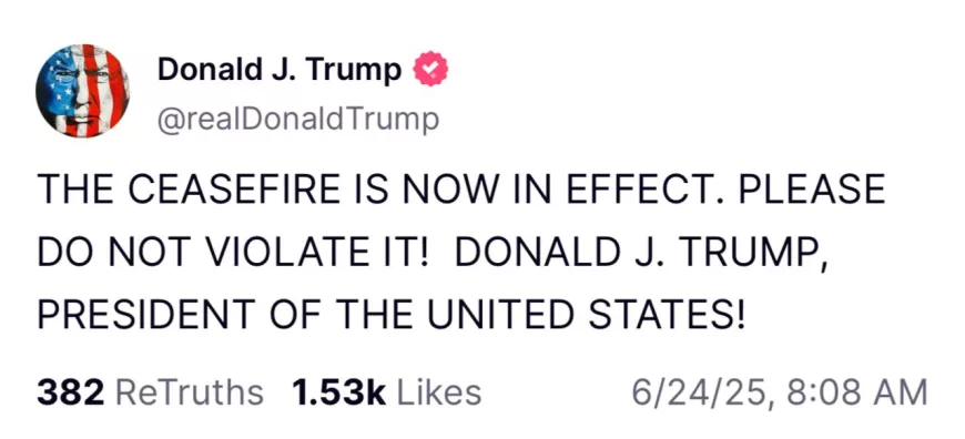 - Официальных заявлений от израильских должностных лиц до сих пор не было. Редкие источники и неназванные инсайдеры не в счёт. Израильские СМИ тоже заявили о перемирии, но со ссылкой на иранские источники и Трампа.