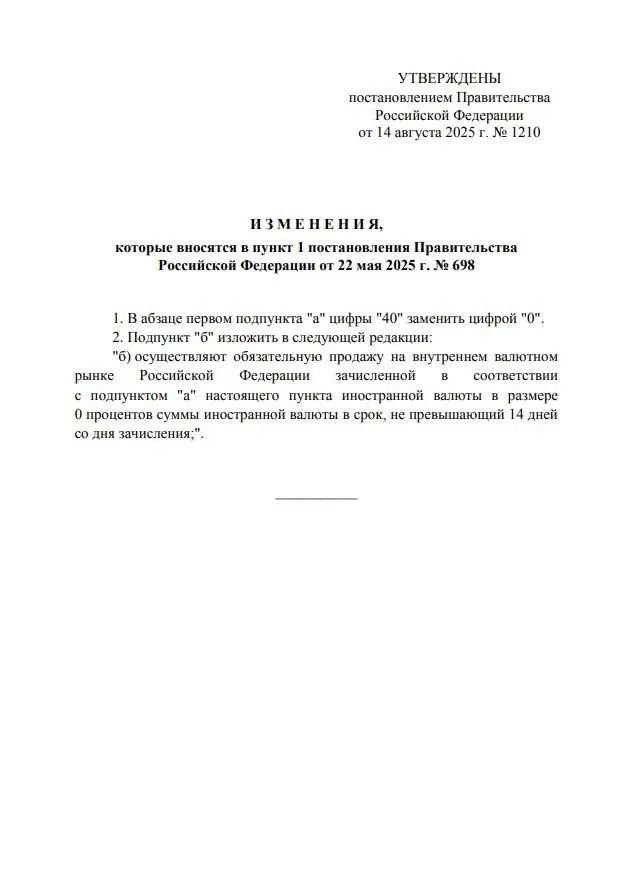 Решение принято в связи с укреплением и стабилизацией курса национальной валюты, а также отсутствием проблем с валютной ликвидностью, пояснили в кабмине РФ.