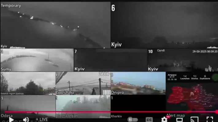 Видно, как после пуска одна из ракет Patriot набирает скорость, а сразу после уходит с траектории и улетает в жилые кварталы.