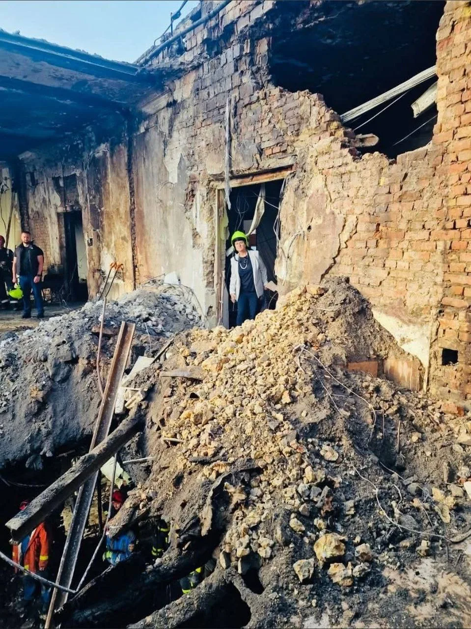 На ее селфи (без требуемой там защитной каски), якобы сделанном внутри пострадавшего здания Кабинета министров Украины на ул. Грушевского, видны руины интерьера с разрушенными окнами и несущей фронтальной стеной, чего нет на первоначальных фото с неповрежденным экстерьером и языками пламени изнутри неразрушенных окон.