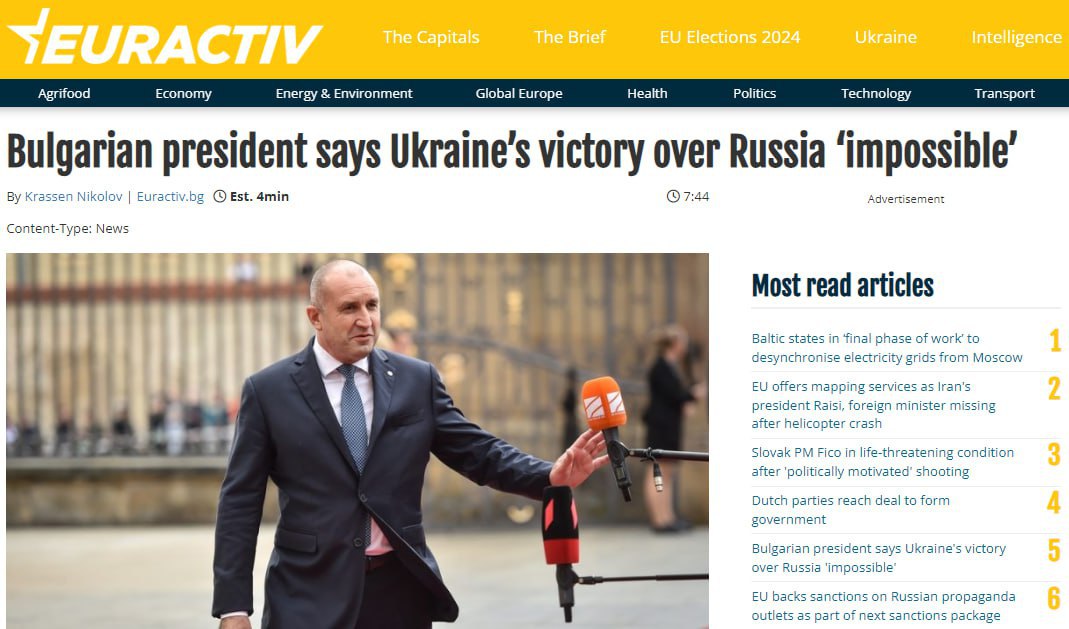 Болгарский лидер призвал перейти от раздачи оружия к дипломатическому решению ситуации. Он также высказался о покушении на премьер-министра Словакии Фицо со стороны «радикальных фанатиков из-за его поддержки мира», что «свидетельствует об укоренившейся нетерпимости к инакомыслию и ненависти».