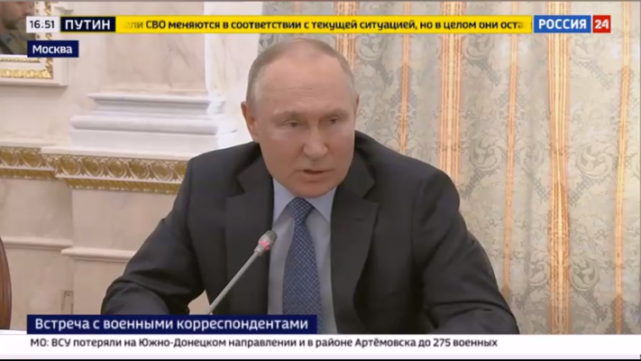 «Я вообще удивляюсь, как человек, у которого в жилах течет еврейская кровь, который возглавляет государство Украина, как он может поддерживать фашистов? Этого человека возвели в ранг национального героя и теперь с этими плакатами разгуливают. То, что там происходит, в историческом плане нас никогда не устроит, и когда шел переговорный процесс, в том числе в Стамбуле, мы постоянно ставили этот вопрос», — заявил Путин.