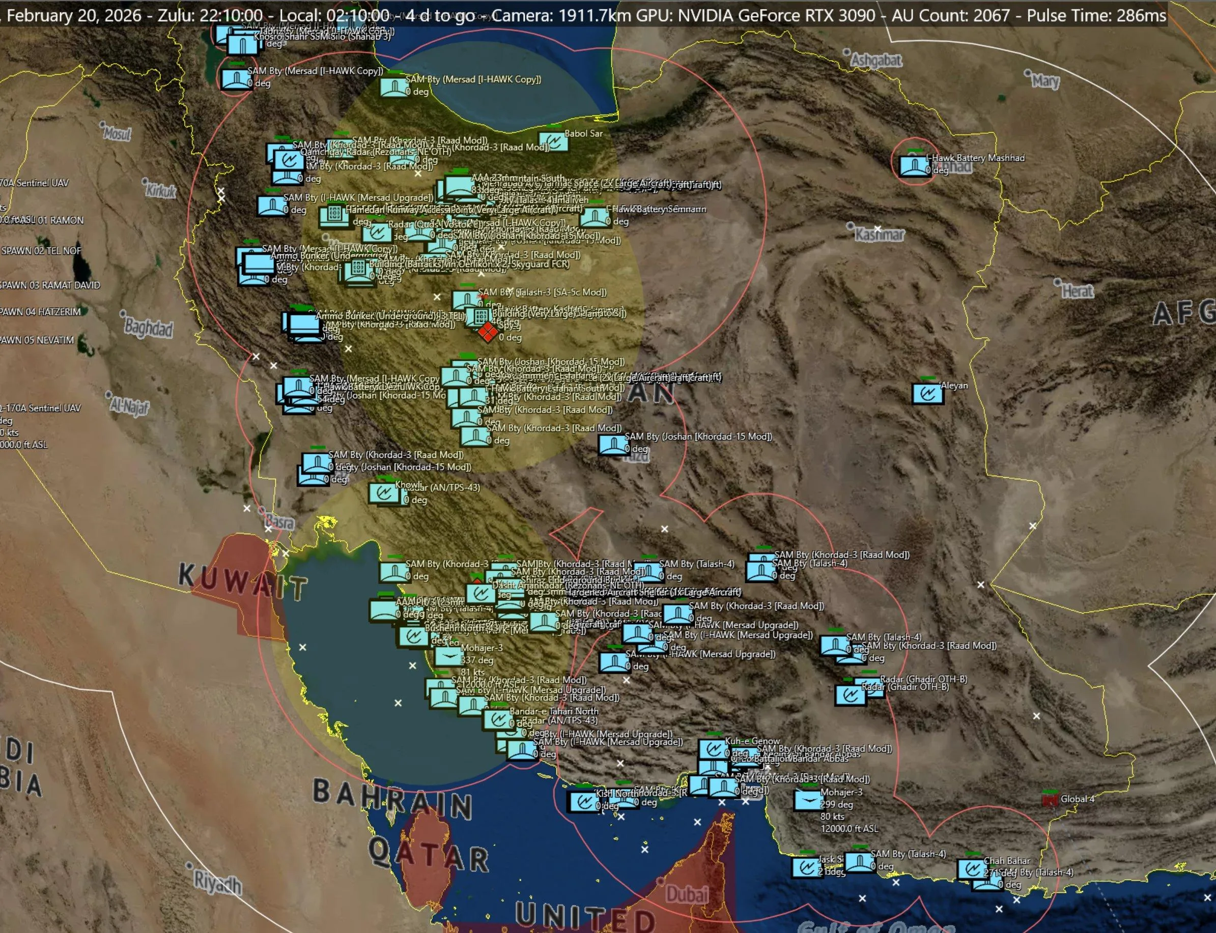 Хорошо заметна их большая концентрация на побережье Персидского залива и ближе к Тегерану. Большая часть пусковых мобильна, так что КСИР могут перемещать их по направлениям, которые сочтут опасными. По некоторым оценкам, количество позиций в угрожаемый период Иран может увеличить примерно в 3-5 раз.
