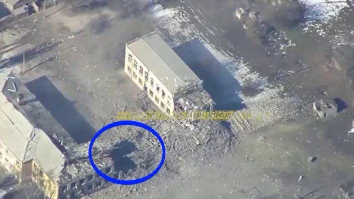 В результате прямого попадания центральная часть здания попросту испарилась.
