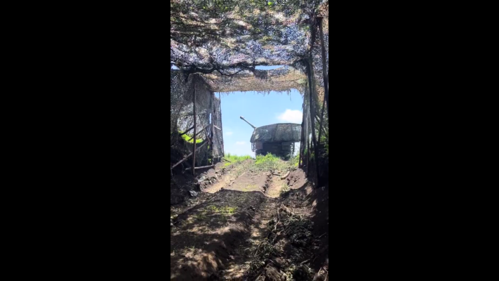 Пример очередного использования противником тактики подземных норм для своей артиллерии, откуда самоходка выезжает сделать несколько выстрелов, после чего сразу скрывается внутрь, чтобы не быть обнаруженной разведывательным дроном, который оперативно наведет на цель «Ланцет», FPV-дрон или «Краснополь».