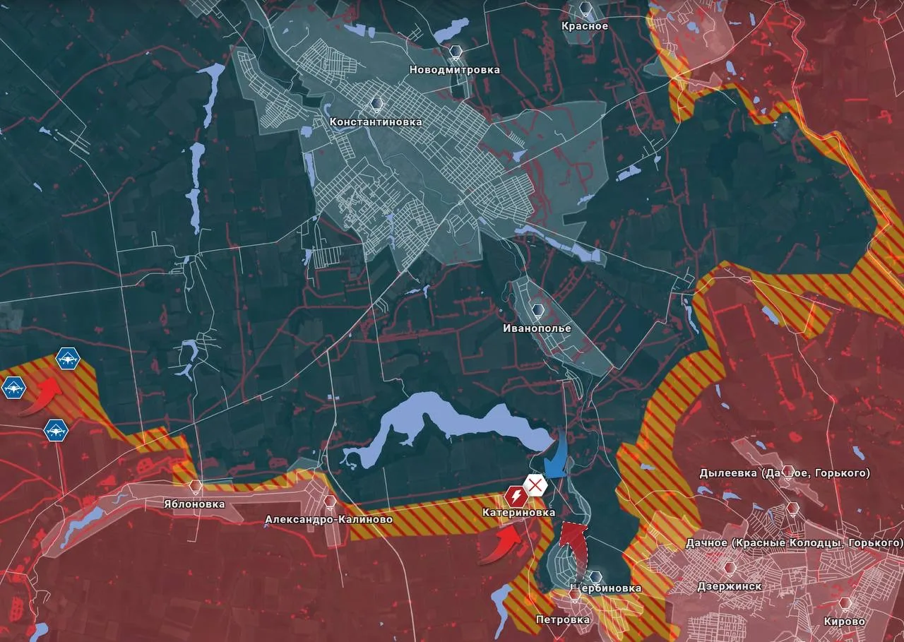 Российские войска стремятся выровнять линию фронта на рубеже Катериновка — Клебан-Бык — Дылеевка, сформировав тем самым плацдарм для наступления на Константиновку с юга.