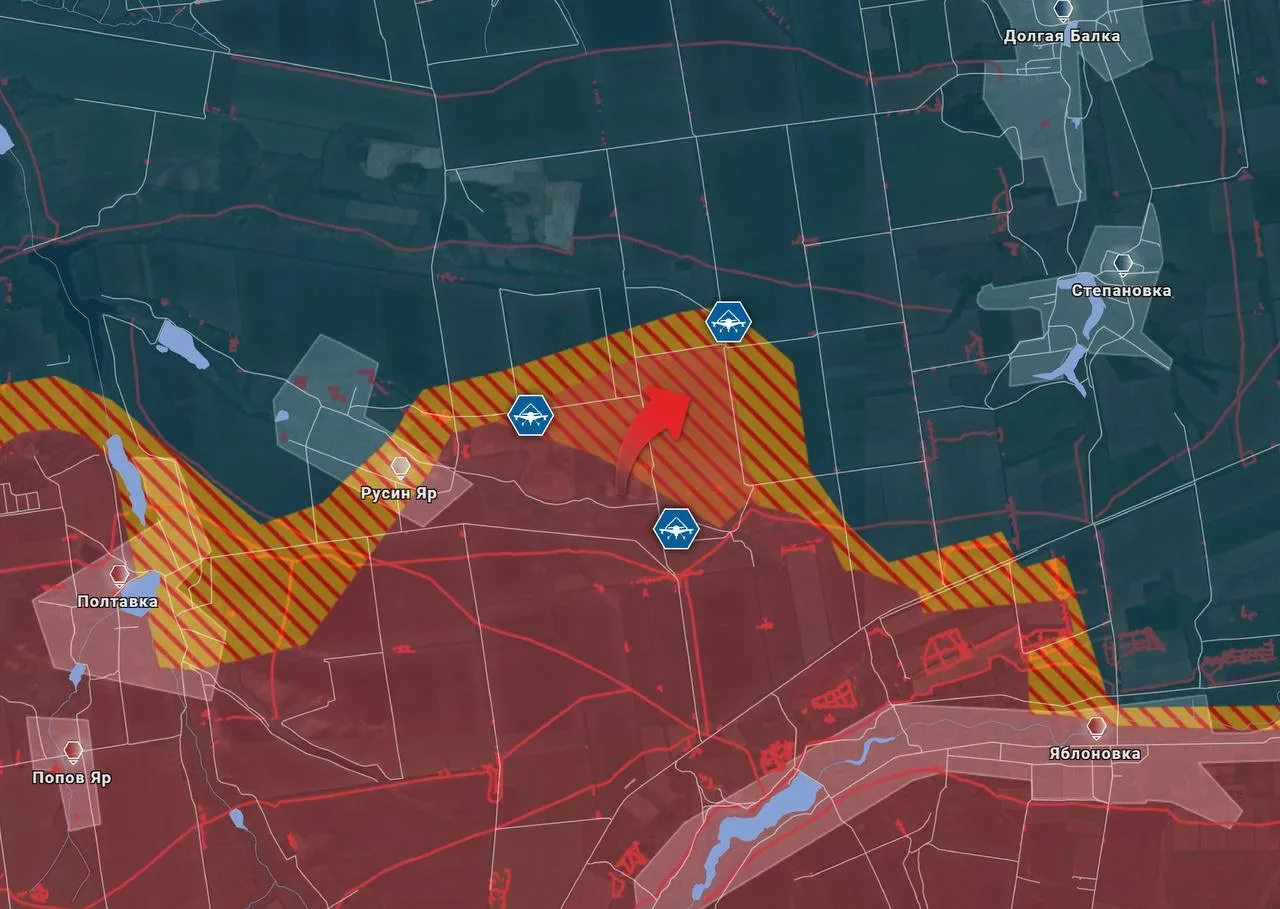 ▪️На западном фланге ВС РФ развивают наступление в окрестностях Русина Яра. Штурмовики зачистили еще несколько лесополос восточнее села и углубились в оборону противника более чем на полтора километра. Это позволило им взять под огневой контроль дорогу снабжения ВСУ к селу и обезопасить правый фланг от возможных контратак.