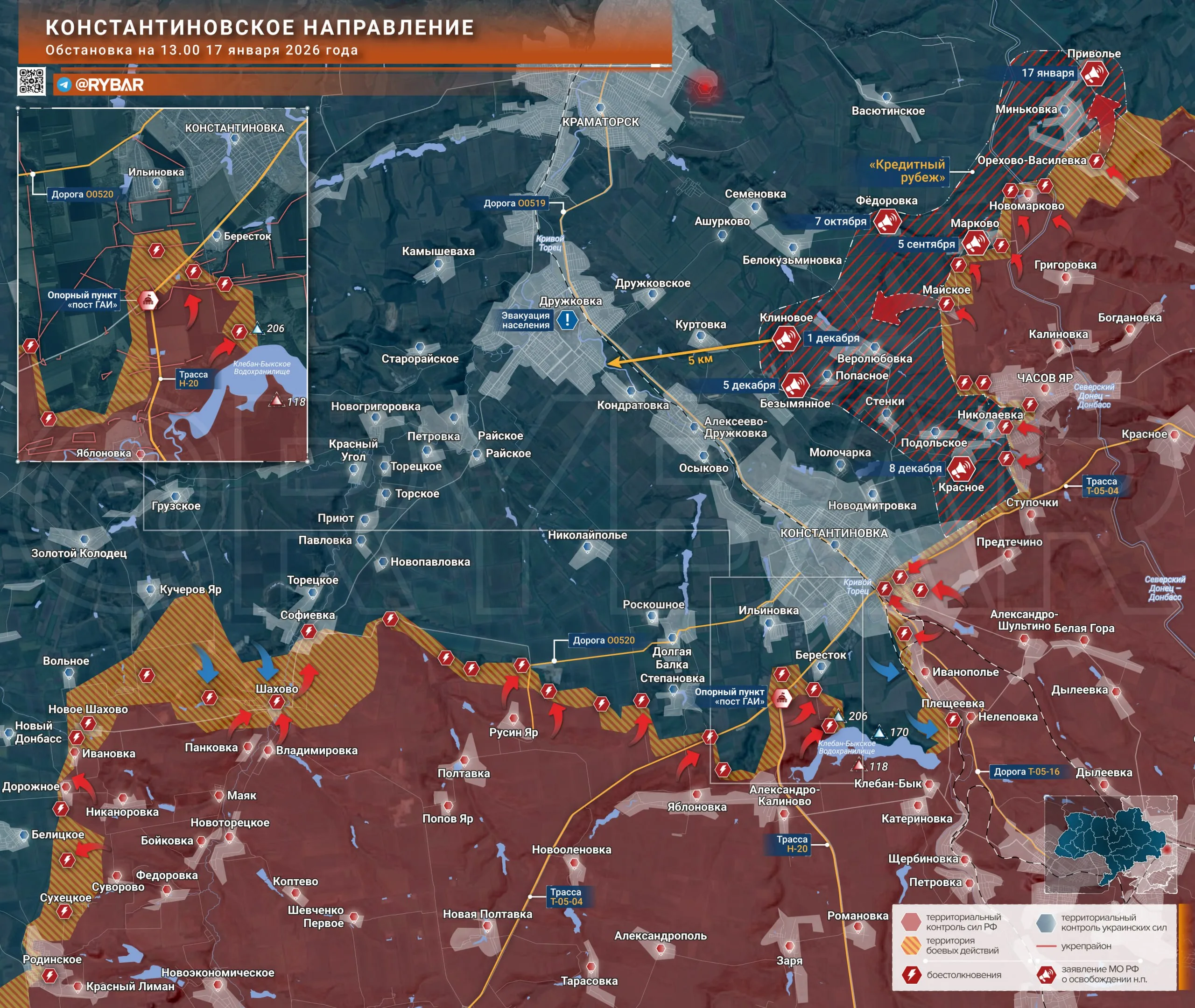 Недавно началось наступление на южном фланге со стороны Клебан-Быкского водохранилища, подразделения ВС РФ относительно успешно продвигаются на нескольких участках. Заявления о полном контроле над северным берегом крайне преждевременны.