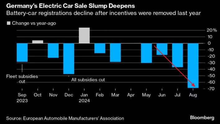В целом по ЕС, падение в сегменте электромобилей — 44%. Общие продажи машин упали на 18,3%.