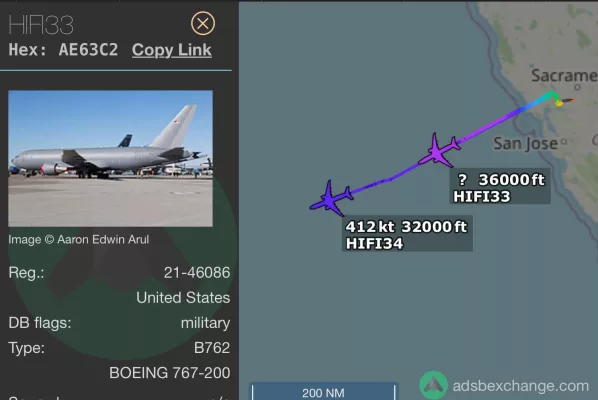 В этот раз с западного побережья США (а/б Тревис) три самолёта-заправщика KC-46A Pegasus вылетели не в направлении Европы, как предыдущие борты, а находятся над Тихим океаном.