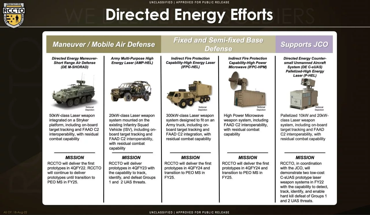 Мобильная лазерная система AMP-HEL, установленная на легком автомобиле ISV, была впервые представлена на выставке AUSA 2023. В 2024 году опытный образец AMP-HEL уже был замечен в Армии. Первый прототип транспортируемой системы P-HEL был передан Армии в 2022 году, а в начале 2024 года был поставлен второй прототип.