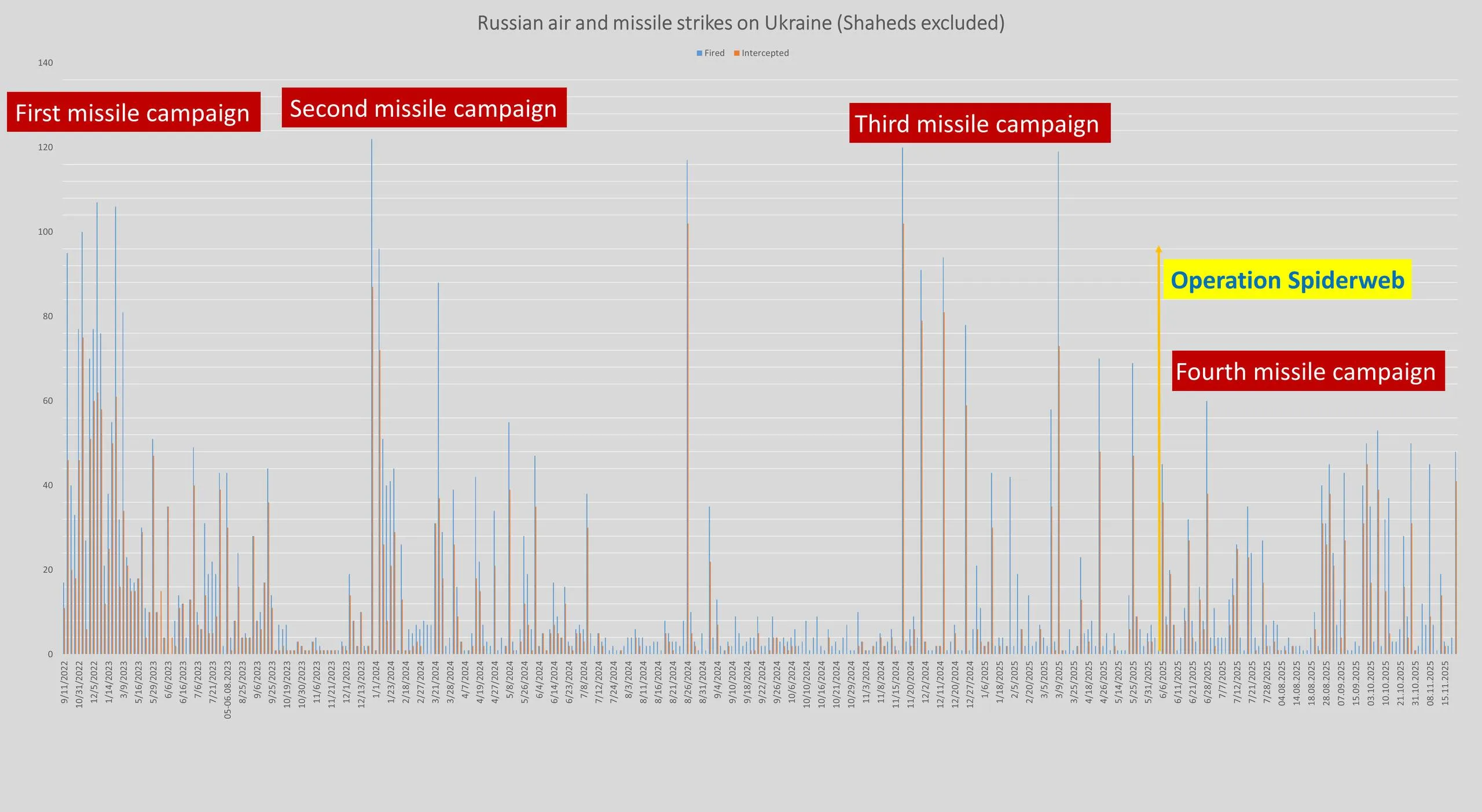 Количественные данные о применении ракет и дронов показывают, что к лету 2025 года Россия фактически перестроила свой комплекс для нанесения дальнобойных ударов. После проведённой 1 июня украинской операции «Паутина» произошёл явный структурный сдвиг.