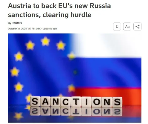Австрия согласилась одобрить 19-й пакет санкций ЕС, сообщает агентство Reuters со ссылкой на заявление МИД страны: