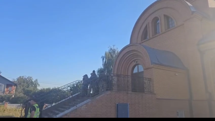 Группа раскольников от ПЦУ вошла на территорию храма. Они заблокировали все входы и пытаются сломать замки.