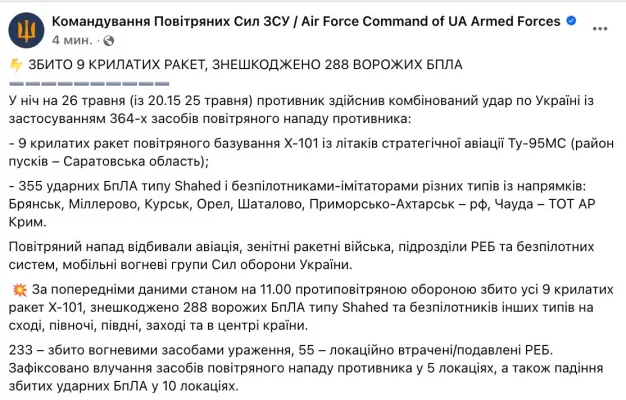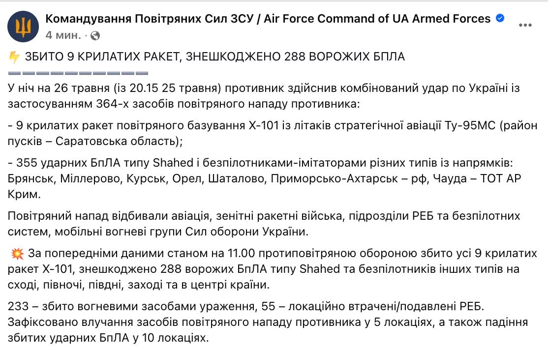 Предыдущий рекорд был буквально вчера и составлял 298 запущенных дронов.