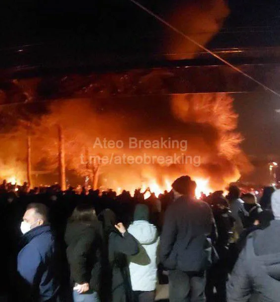 - В Исфахане участники акций подожгли здание государственной телерадиокомпании, а в Тегеране с помощью автокрана демонтируют большой сферический герб Исламской Республики Иран в Тегеране.