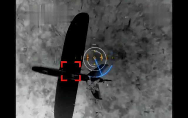 Дрон(вероятно гексокоптер) с подвешенным разводным захватом(по типу того, что используется в автоматах по доставанию игрушек) поднимает на тросе и эвакуирует в тыл разведывательный БпЛА. Очередное подтверждение тому, что тактика и способы применения беспилотной авиации меняются и возникают буквально каждый день.