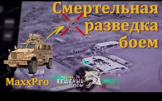 На видео штурмовая группа 68-й егерской бригады ВСУ в составе 8 человек, пытавшаяся запрыгнуть на позиции бригады «Бешеные псы». До высадки не дошли – засечены, накрыты артиллерией, уничтожены вместе с бронетранспортёром International MaxxPro