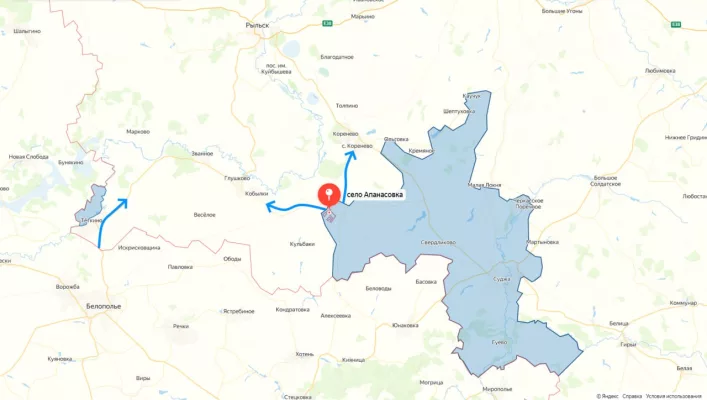 От взятой Апанасовки, при наличии резервов, ВСУ могут как продолжать попытки прорыва Коренево, так и двинуться вдоль реки Сейм на запад в сторону Глушково и Званного (где недавно были уничтожены переправы), одновременно с этим нанося удар через границу в направлении Теткино.
