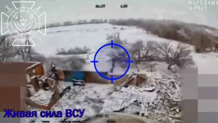На кадрах, предоставленных нашими бойцами, выжившая группа «отряда самоубийц», поджав пятаки, позорно бежит из населенного пункта и скрывается в лесу северо-западнее.