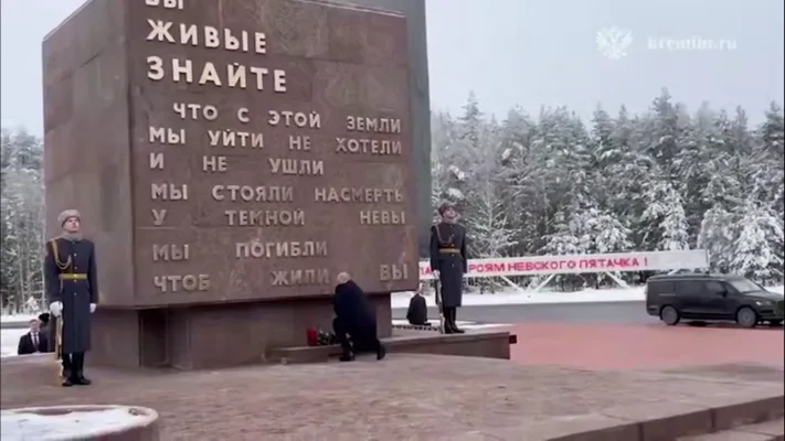 В 82-ю годовщину снятия блокады Ленинграда Владимир Путин возложил цветы к монументу «Рубежный камень» на Невском пятачке.