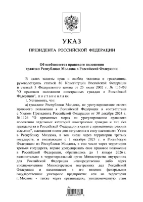 - Если молдаване не нарушали закон и не представляют угрозу нацбезопасности, их освободят от ответственности за миграционные нарушения. Им дают время до 1 января 2026 года, чтобы легализовать своё пребывание, обратившись в МВД.