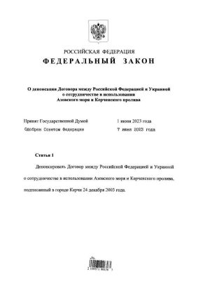 После принятия в состав России ЛДНР, Запорожской области и Херсонской области Украина утратила статус прибрежного государства в отношении Азово-Керченской акватории.