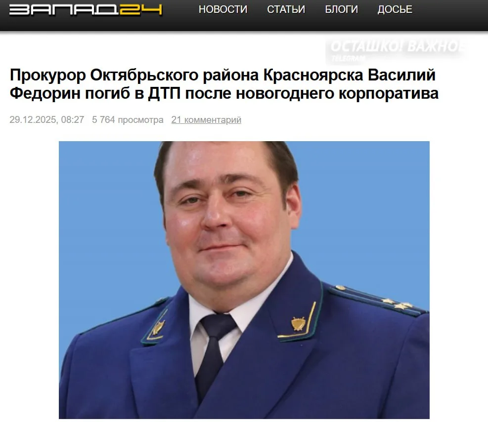 Это не первый подобный случай в регионе: в феврале 2025 года в ДТП, которое он сам спровоцировал, погиб зампрокурора Красноярска Руслан Галеев.