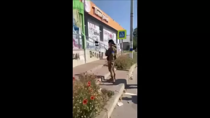 Каждый уважающий себя захистник в оккупированном городе считает своим долгом запечатлеть себя на фоне супермаркета и оставить на стене какую-нибудь надпись.