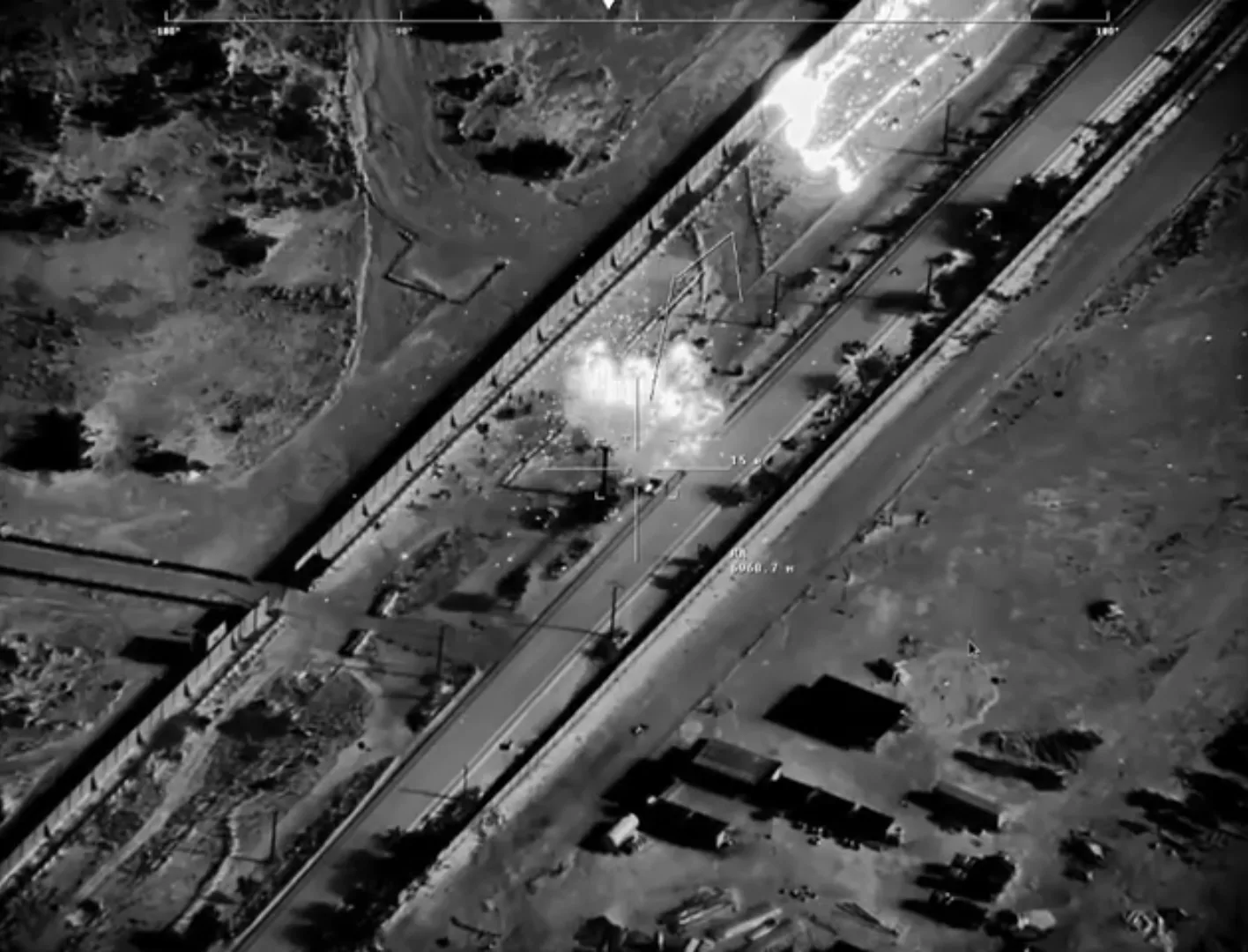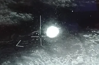 На втором фрагменте можно заметить процесс точного маневрирования боеприпаса за прицелом оператора дрона.
