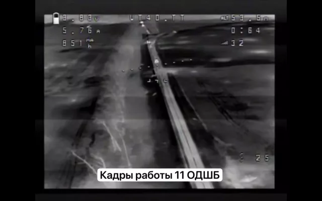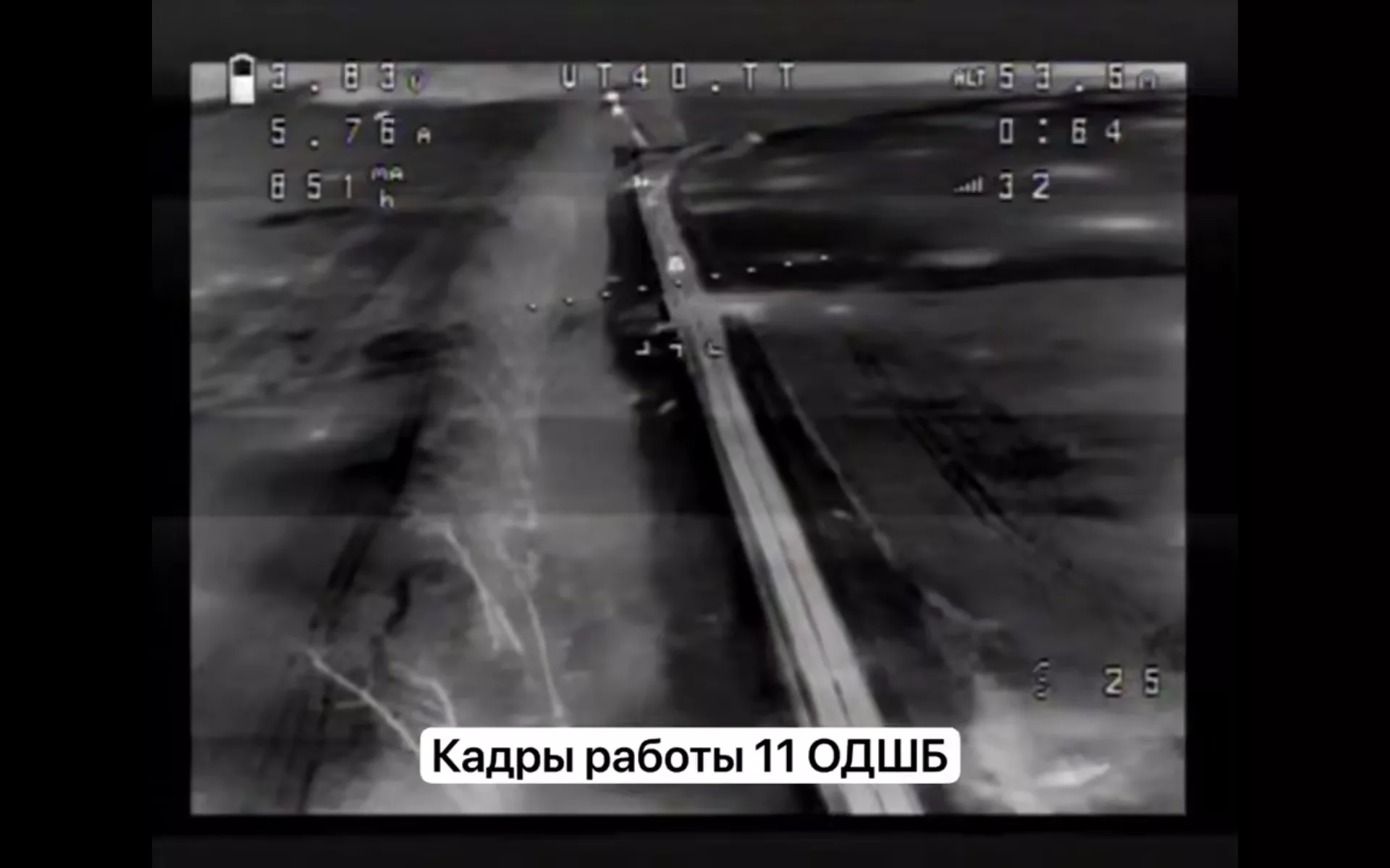 Очередной ББМ противника сожжен нашими воинами, в кадре применение ночной версии FPV дрона BT-40.