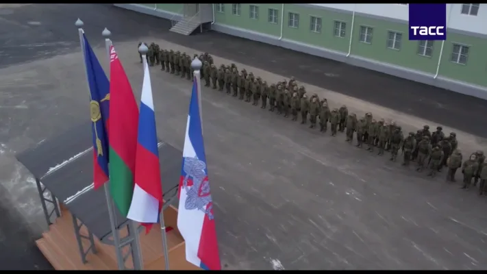 В Республике Беларусь состоялась торжественная церемония заступления на боевое дежурство подразделения, оснащенного подвижным грунтовым ракетным комплексом «Орешник». В ходе завершения воинского ритуала развода дежурных смен был поднят флаг РВСН