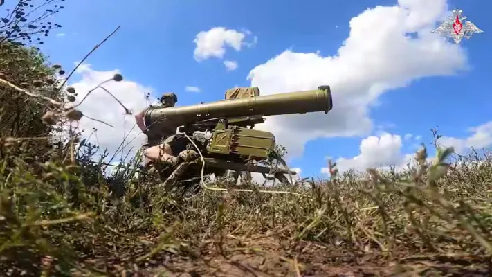 - Приведение комплекса из походного положения в боевое и наведение на цель заняло три минуты. После этого термобарический реактивный снаряд был выпущен по цели, находившейся на расстоянии трёх километров.