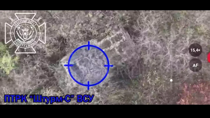 Несколькими точными ударами БпЛА «Молния» уничтожен ПТРК «Штурм-С» на базе МТЛБ. Работают расчеты полка ВКС РФ.