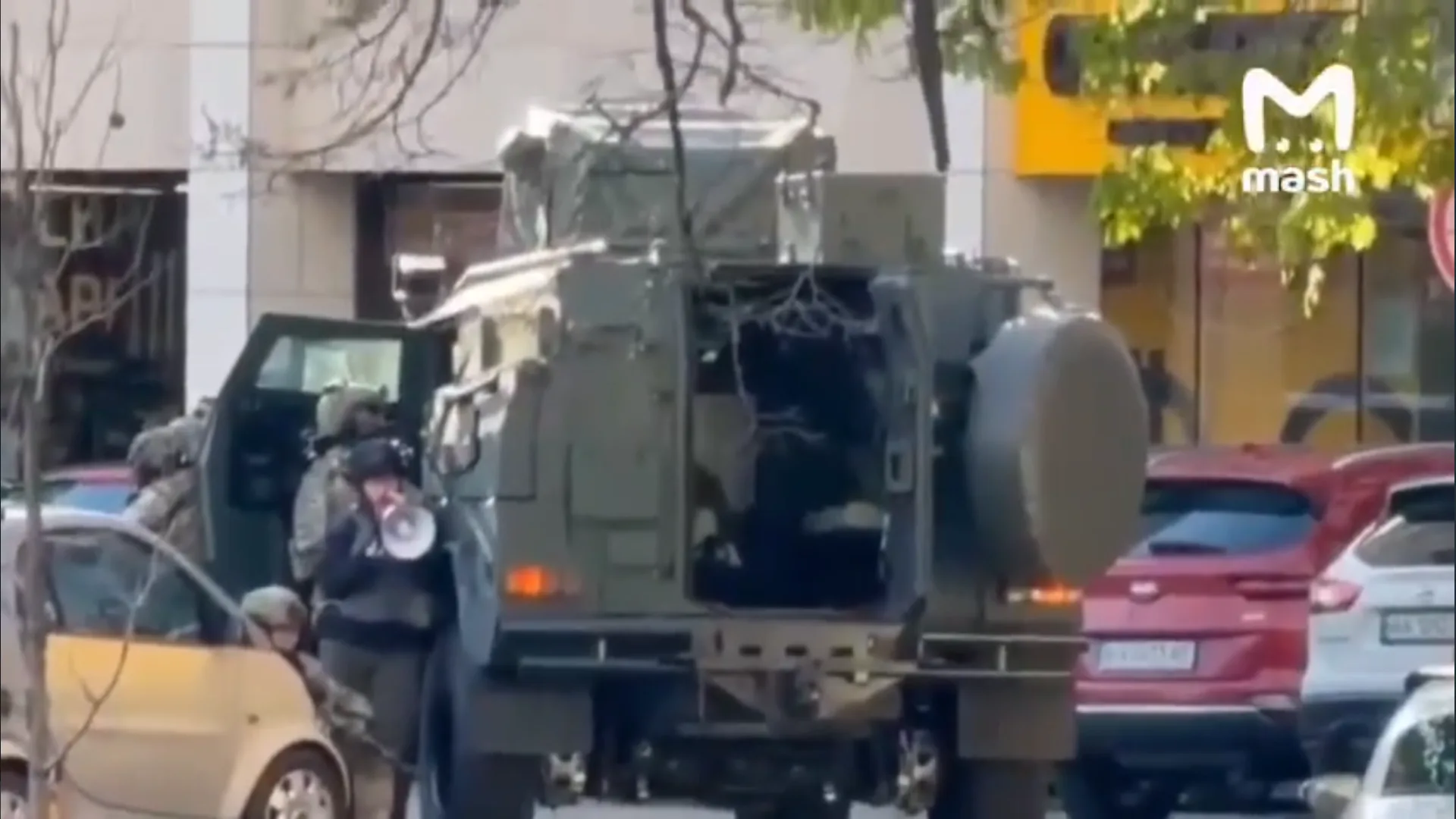 Сегодня он сбежал из части, открыл огонь из, предварительно, полуавтоматического карабина пистолетного калибра Kel-Tec SUB2000 по прохожим (один из раненых — ребёнок), а потом взял в заложники покупателей супермаркета на Голосеевском проспекте.