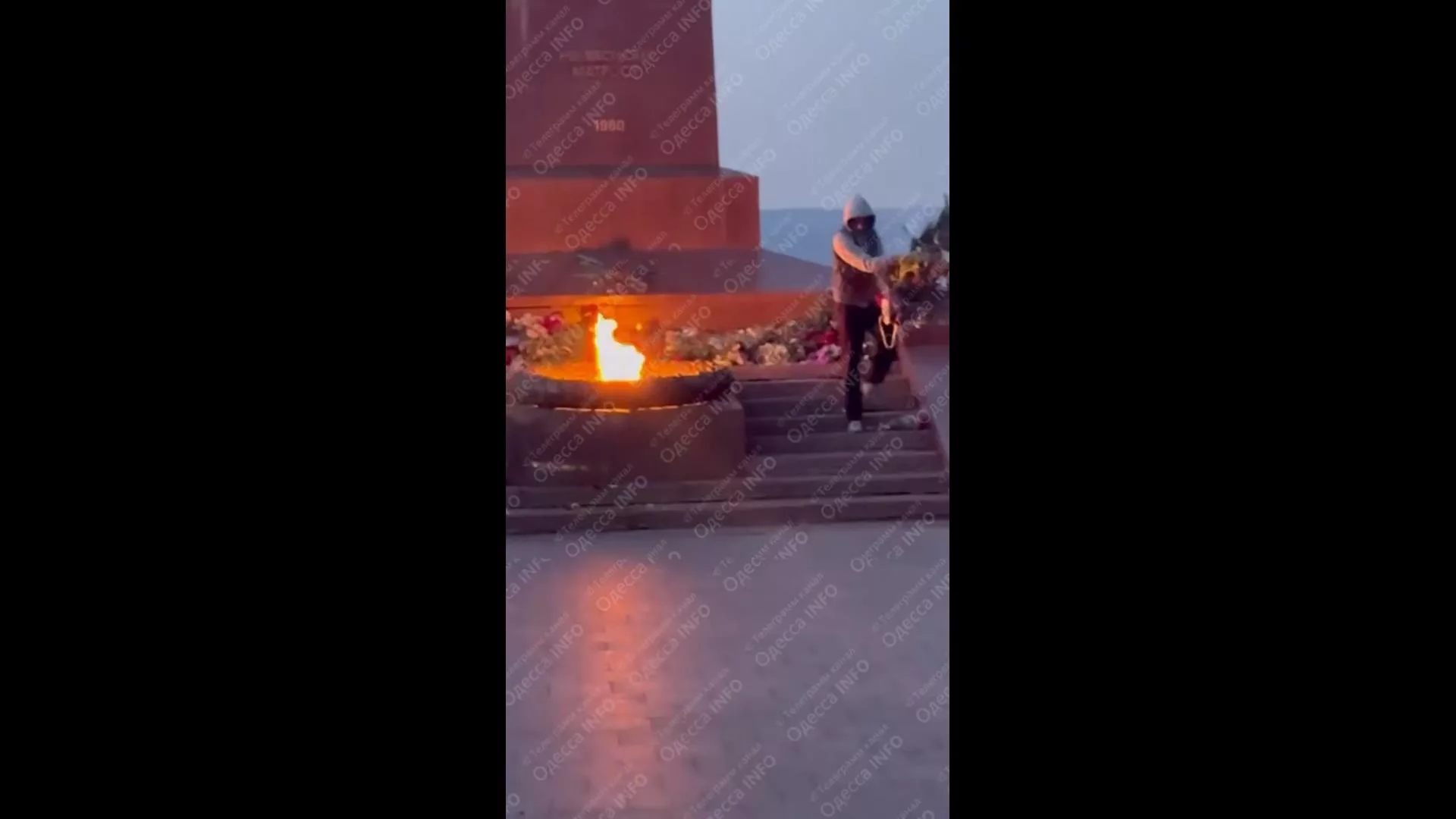 Группа молодых людей осквернила памятник Неизвестному матросу на Аллее Славы в парке Шевченко. Мемориал, посвящён советским морякам, погибшим при защите города от немецких захватчиков.