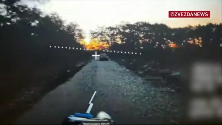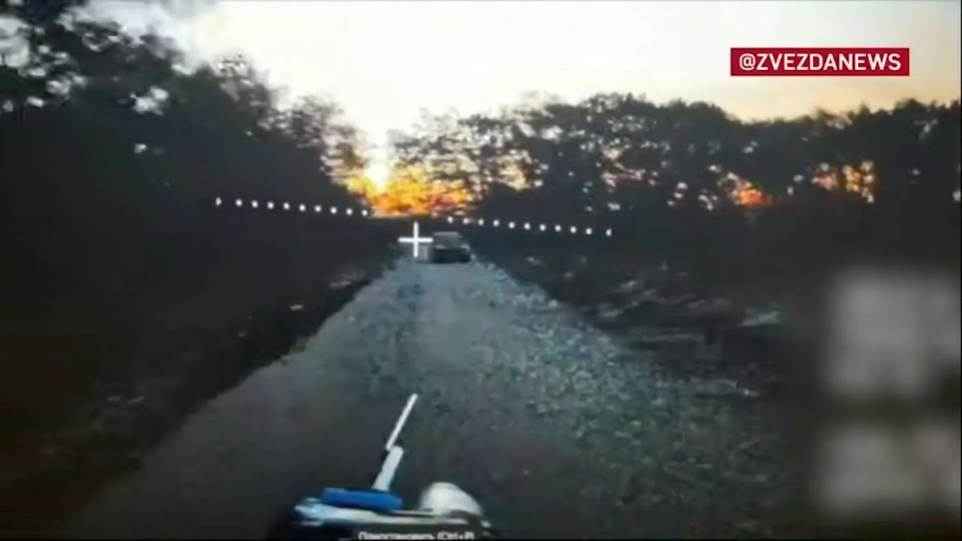 Беспилотник снижается почти вплотную: в кадр попадает кузов, двери и даже салон машины. После точечных ударов пикапы охватило пламенем.