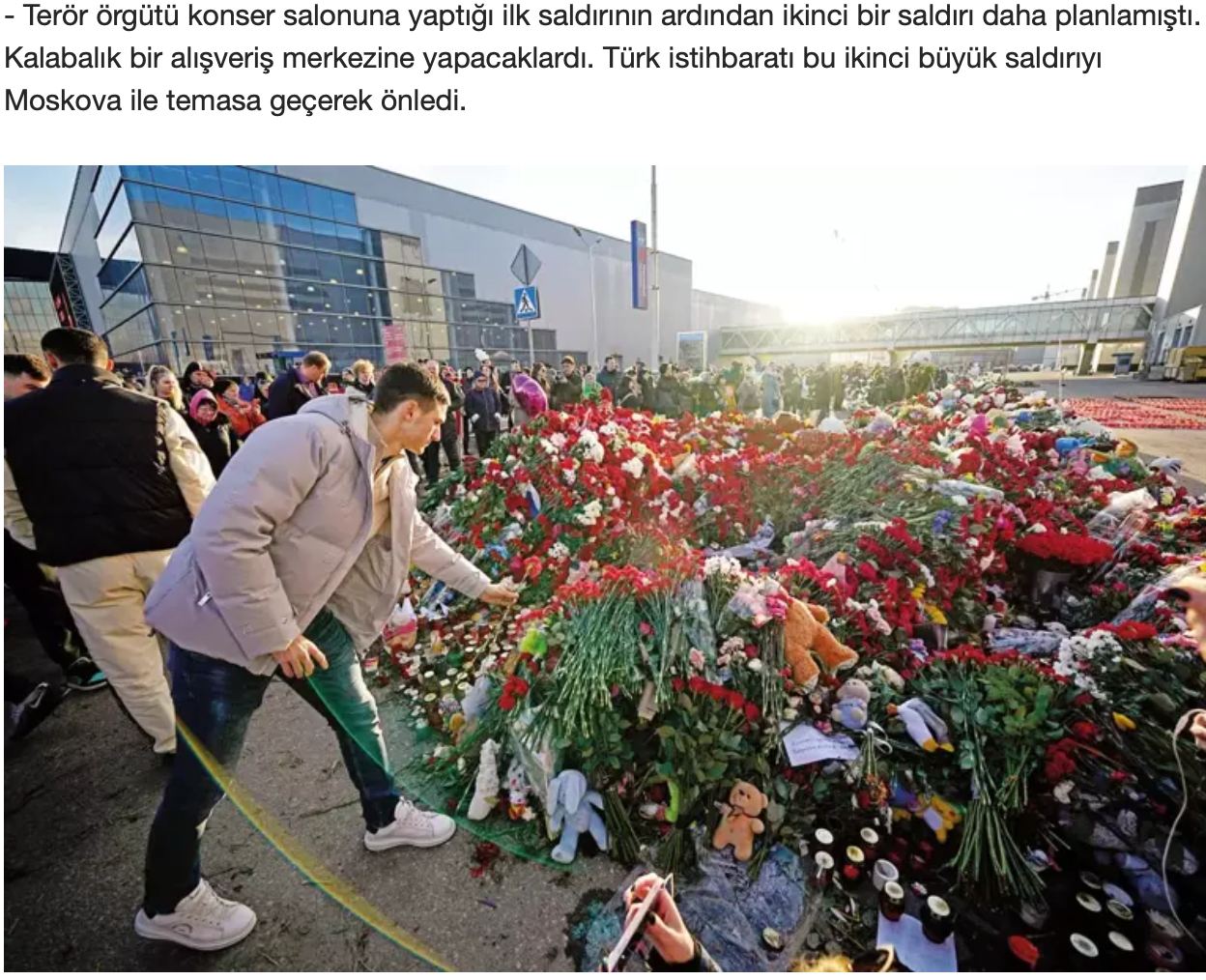 Об этом сообщает местная газета Hürriyet. Сообщается, что турецкие спецслужбы предупредили Москву о готовящемся втором теракте. Террористы группировки «Вилаят Хорасан» (связана с «Исламским государством»*) планировали напасть на переполненный торговый центр.