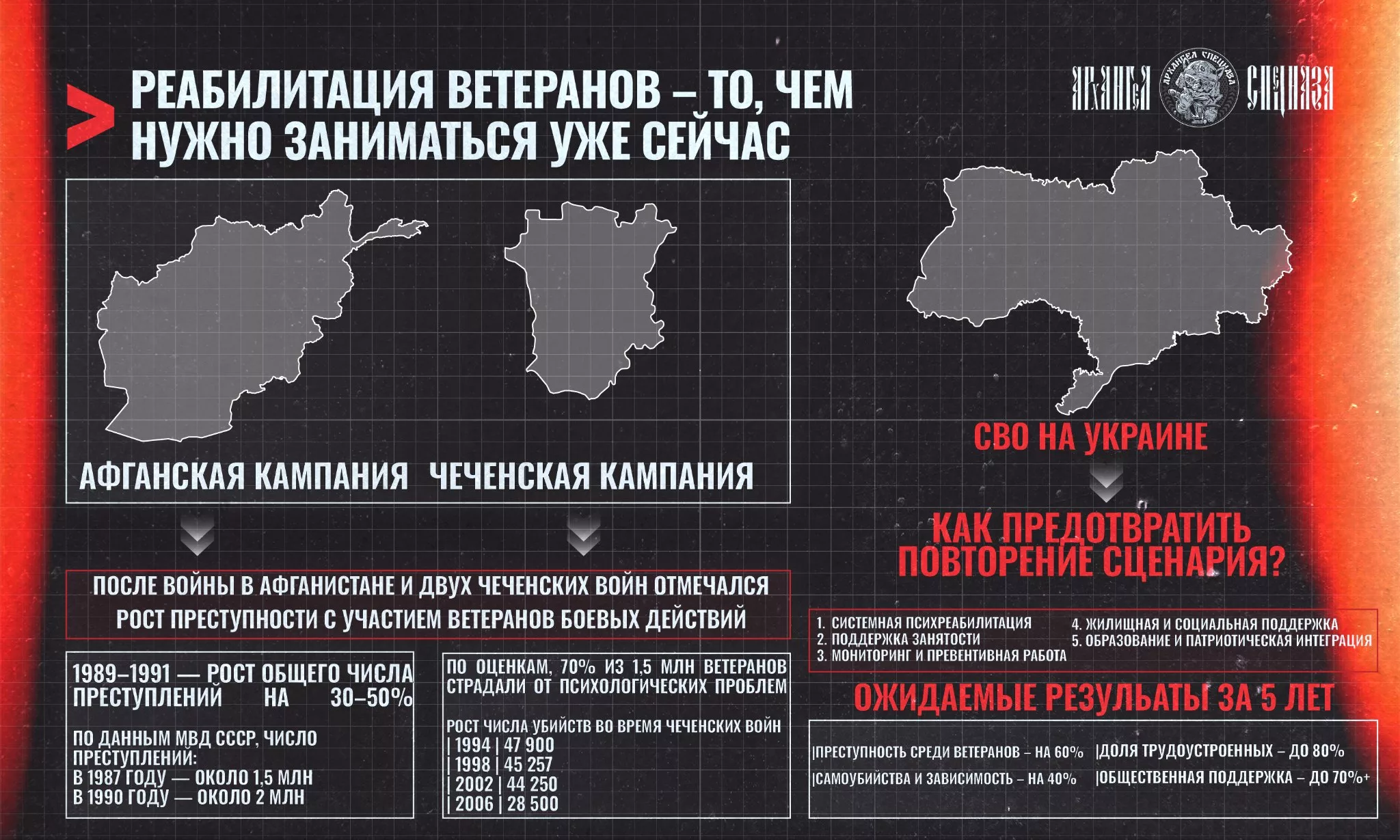 Чтобы предотвратить рост преступности после СВО, государству необходимо проводить целенаправленную политику социальной и психологической реабилитации. Например, в США и Израиле, которые инвестируют миллиарды в лечение, восстановление и психологическую поддержку ветеранов — это снижает преступность, самоубийства и домашнее насилие. И данные подходы могут быть успешно адаптированы для Российской Федерации с учетом её реалий.