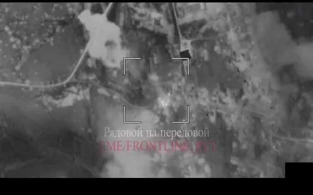 Детонация склада с реактивными снарядами и минами по координатам: 48.8728333, 37.9069878.