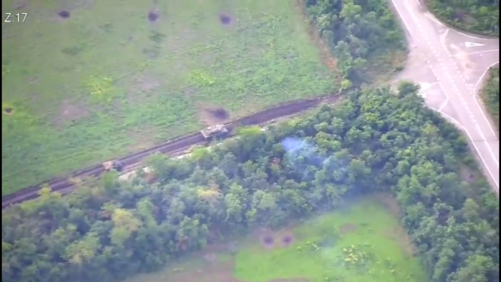 Можно наблюдать попадание в российскую машину, но судя по характеру взрыва, стреляли ОФ снарядом, поэтому танк ушел, несомненно, с повреждениями наружного оборудования. Видео времен начала наступления на Запорожском направлении.
