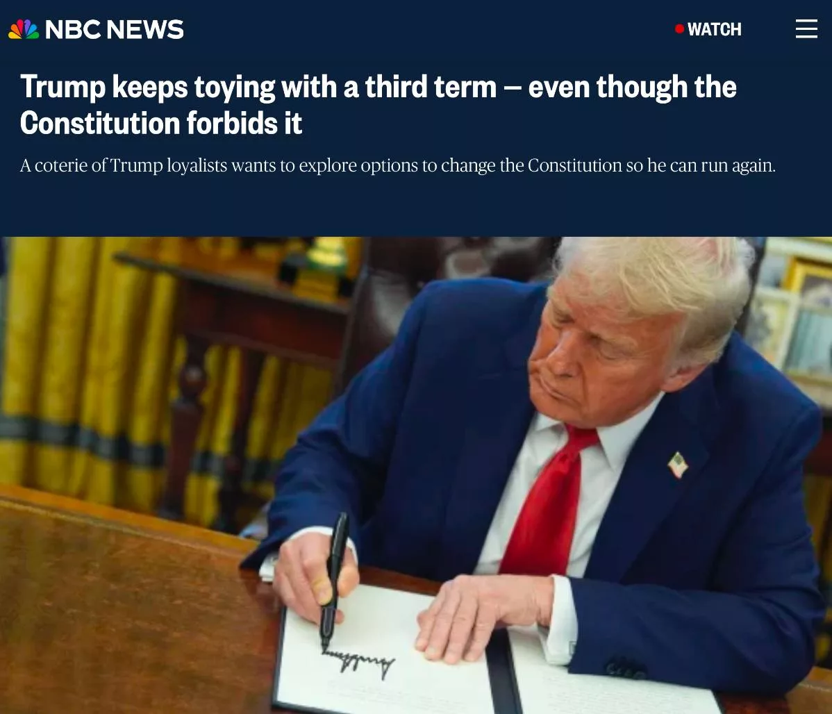 Сторонники американского лидера хотят законодательно разрешить ему баллотироваться в президенты в 2028 году. Конференция консервативных политических действий (CPAC) уже выдвинула лозунг: «За Трампа в 2028 году… и далее!»