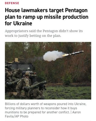 ✅По данным газеты, комитет по ассигнованиям вычеркнул из бюджетных планов Пентагона, поданных Байденом, $2,5 миллиарда на производство ракет.