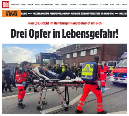 3 из 12 человек находятся в критическом состоянии после нападения 39-летней женщины с ножом на центральном вокзале в немецком Гамбурге.