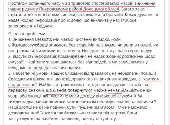 Из текста обращения становится известно, что огромное количество бойцов 59-й бригады «пропали без вести», и никаких комментариев об их судьбе командиры не дают.